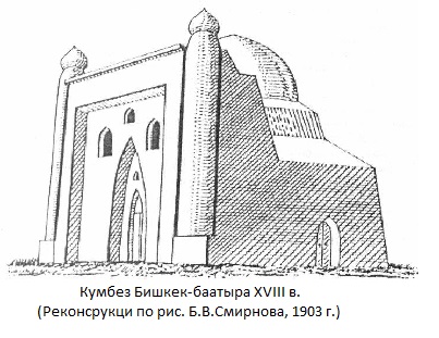 По архивным данным, в начале ХХ века гумбез Бишкек-баатыра был отреставрирован Петербургскими реставраторами, но в 1956 году горисполком города Фрунзе официально издал указ "О снесении памятника, возведенного в честь Бишкек-баатыра", подписанный тогдашним председателем горисполкома Койназаровым. Кумбез был снесен бульдозером, а на месте кладбища построили кинотеатр и ресторан "Иссык-Куль". "Этому факту равнодушия и вандализма нет прощения! И только народная память хранит то, что основатель нашей столицы когда-то был похоронен именно здесь, у Великого шелкового пути, где прошла вся его трудовая жизнь", – так по этому поводу говорил Народный поэт Кыргызстана Токтосун Самудинов.